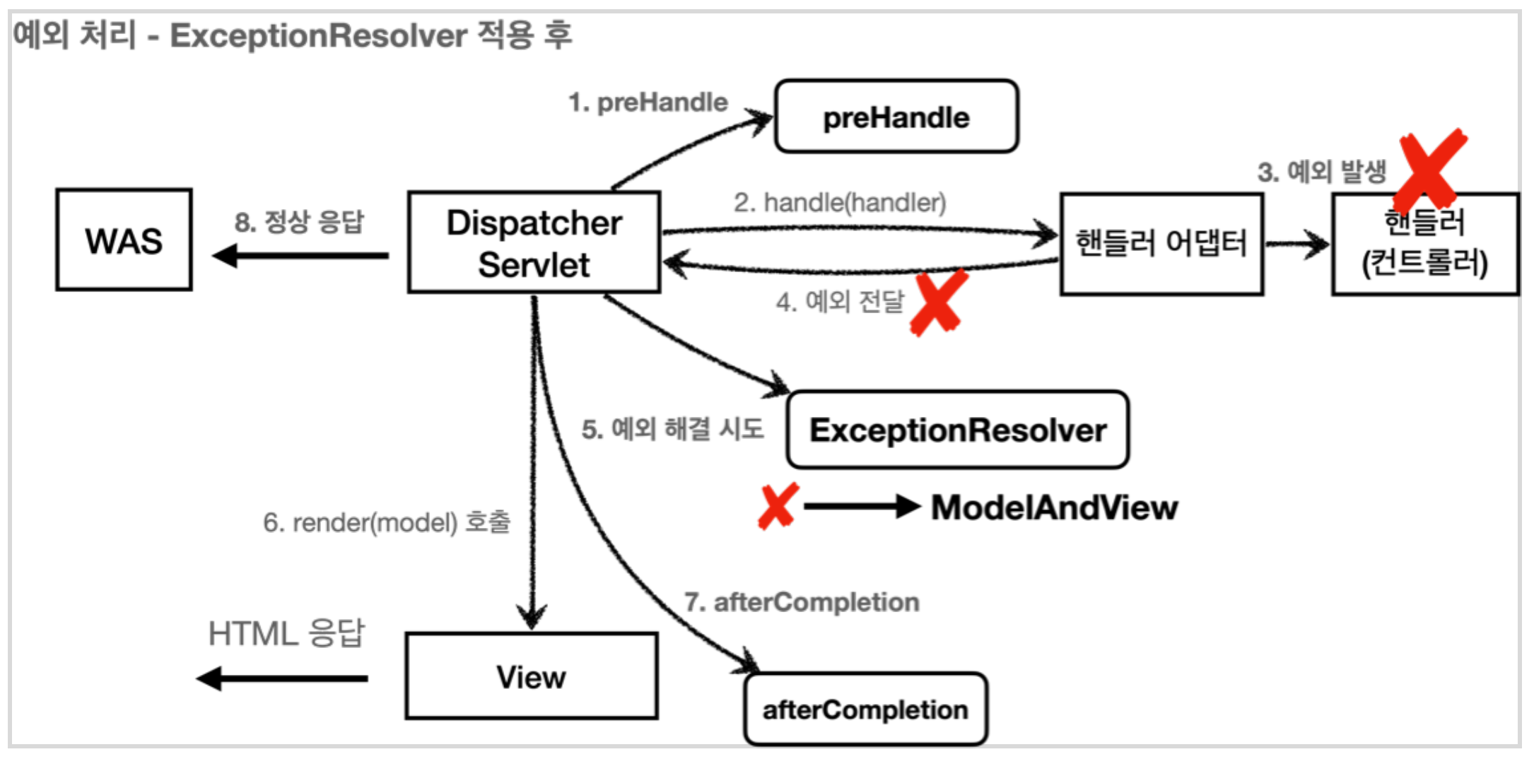 참고로 핸들러에서 예외가 발생했을 때 HandlerExceptionResolver